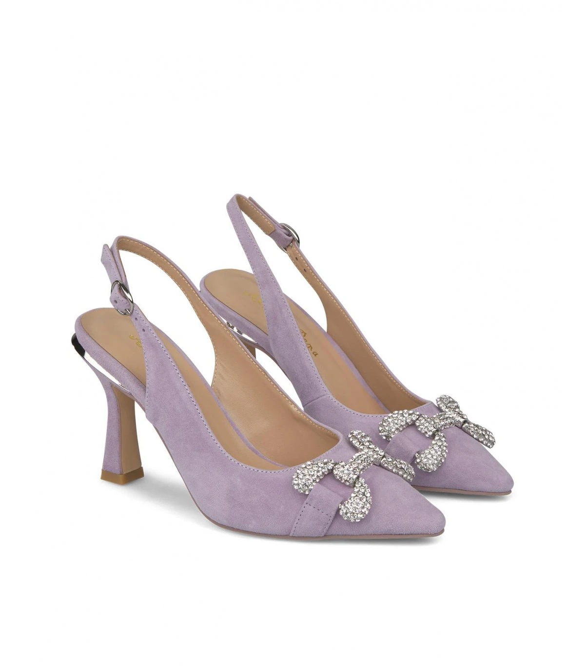 Mule de piel con adorno de pedrería en la puntera. Cierre con hebilla ajustable. Plantilla acolchada de piel. La altura del tacón es de 4cm.