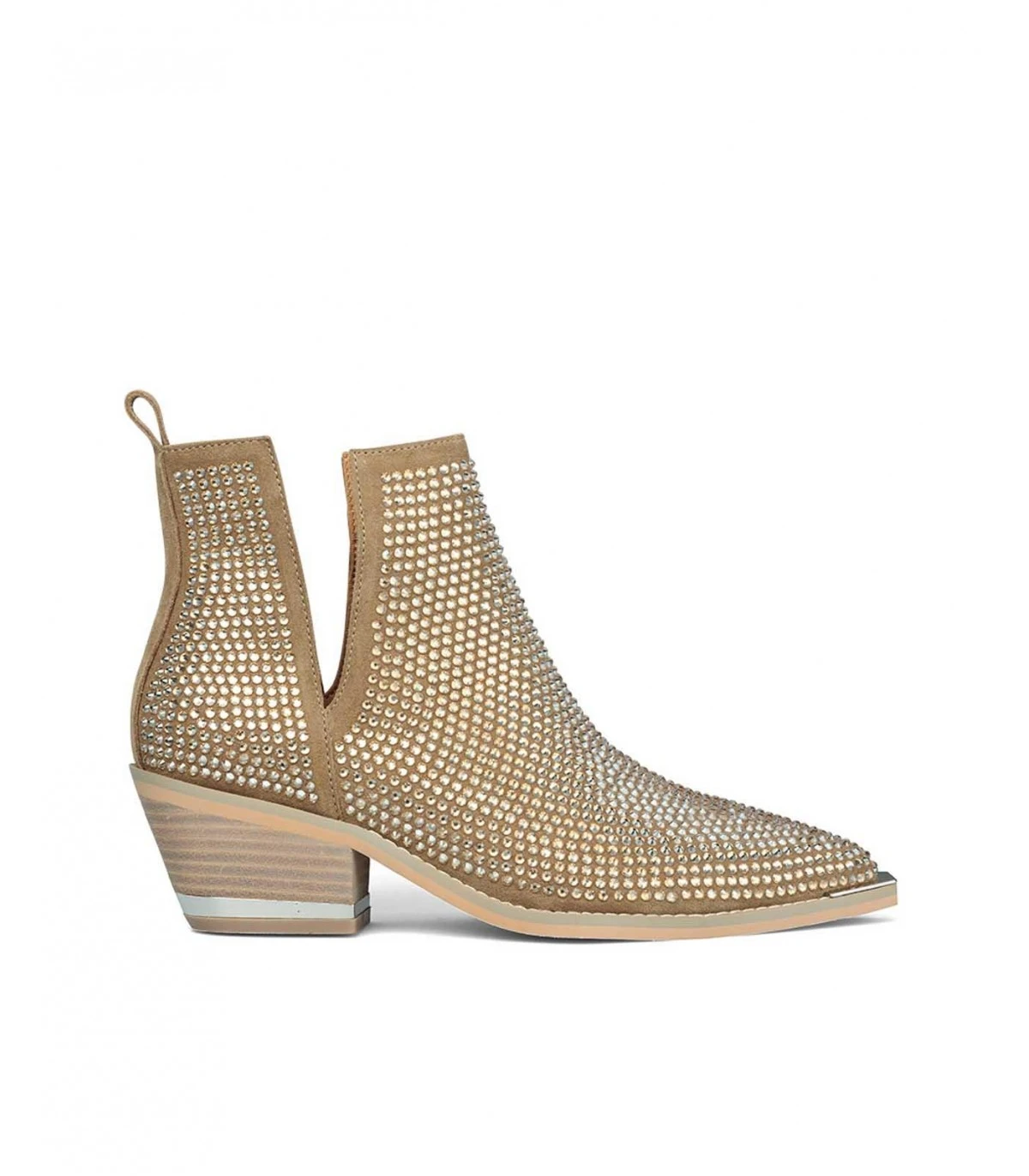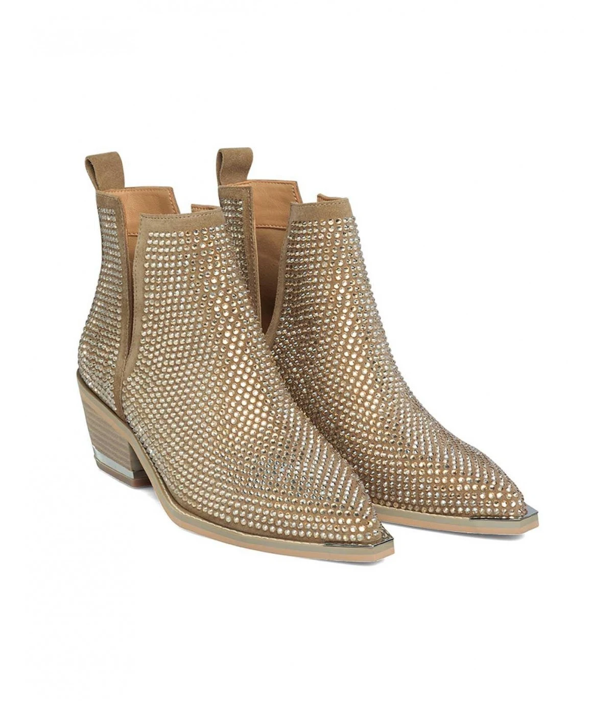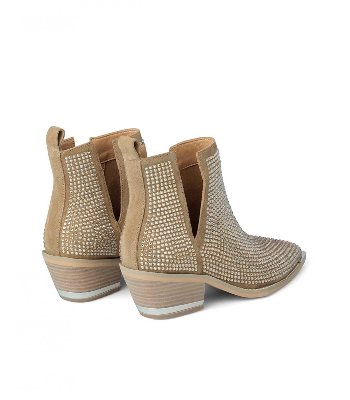 BotÃn de piel cubierto de pedrerÃa La altura del tacón es de 6cm y la altura de la caña es de 12cm. Plantilla acolchada de piel.