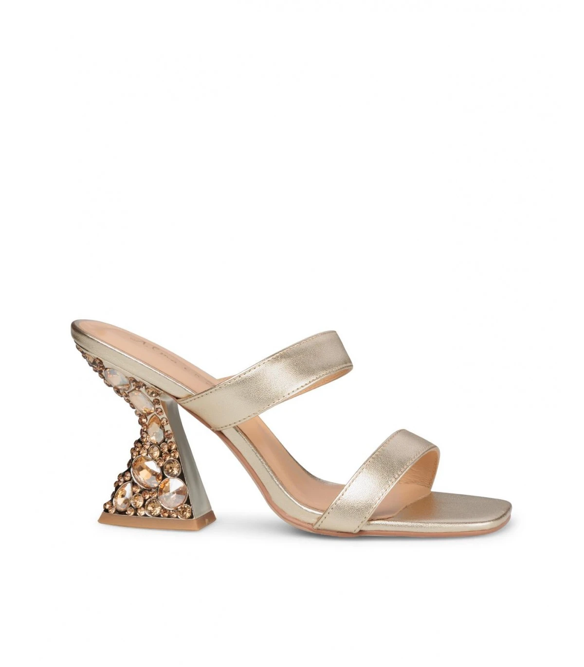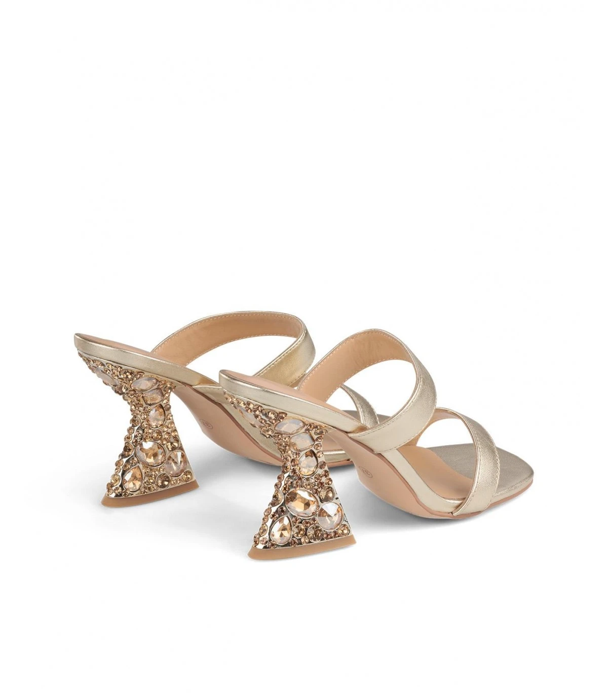 Sandalia de tacón con pedrería. Plantilla acolchada de piel. La altura del tacón es de 9cm.