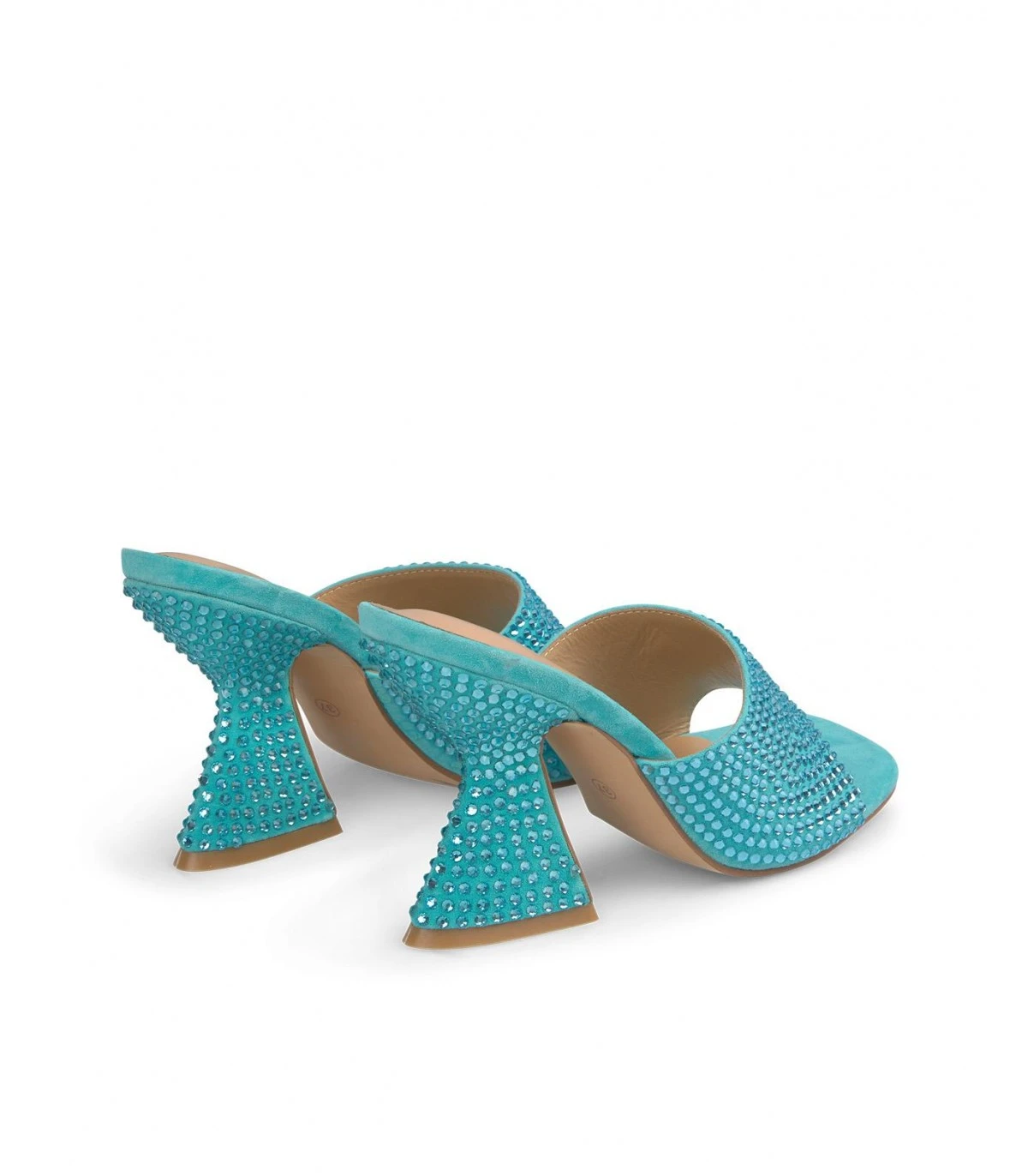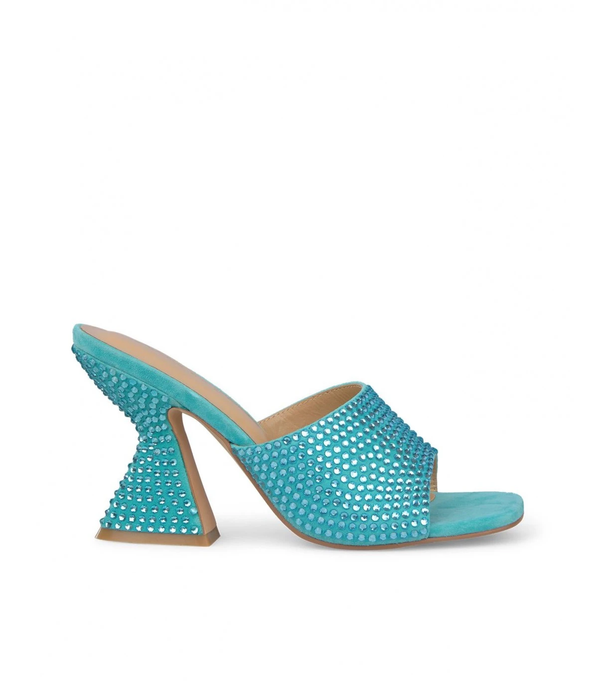 Sandalia de tacón realizada en piel con adornos de pedrería en el tacón y la tira delantera. Plantilla acolchada de piel. La altura del tacón es de 9cm.
