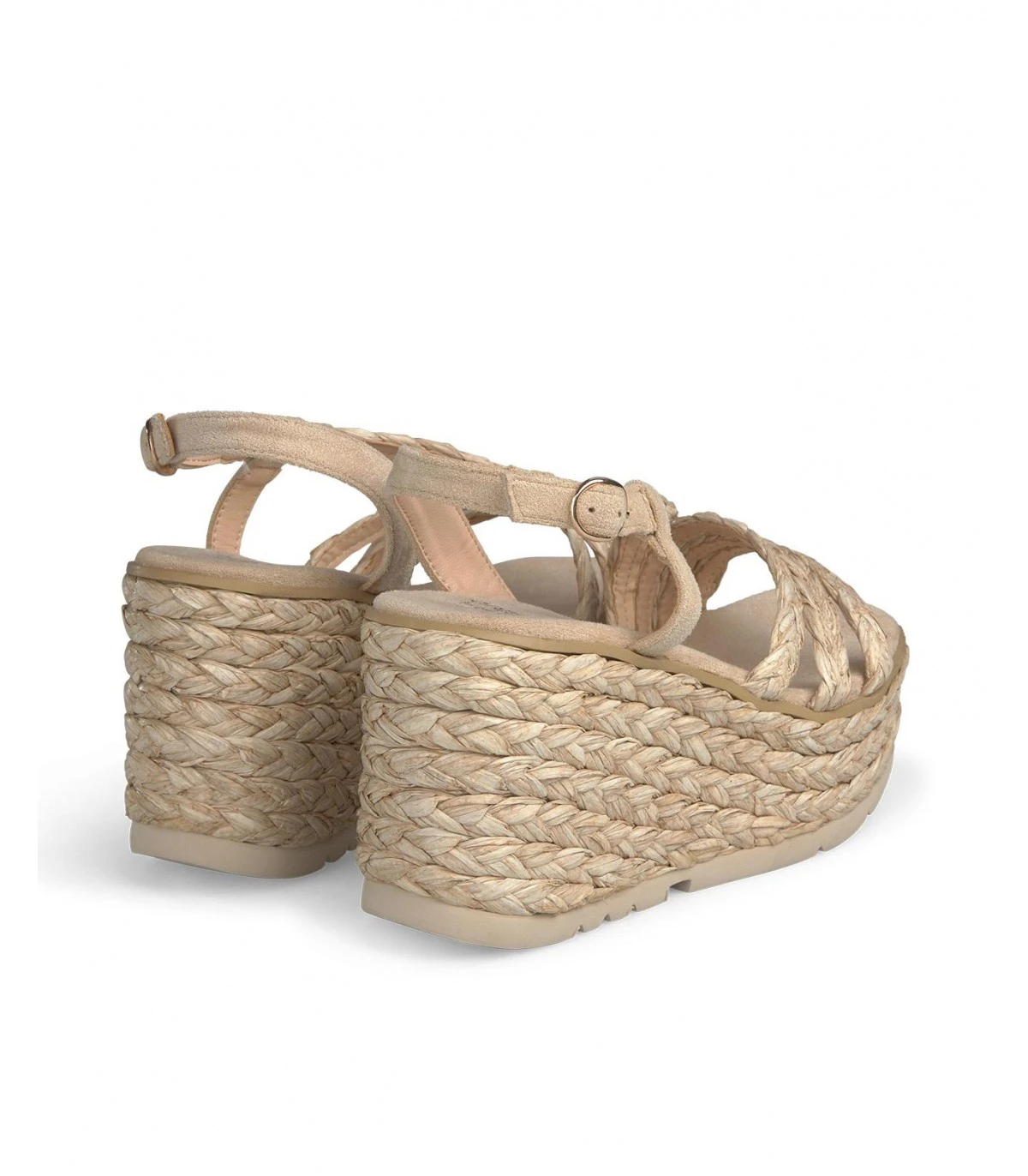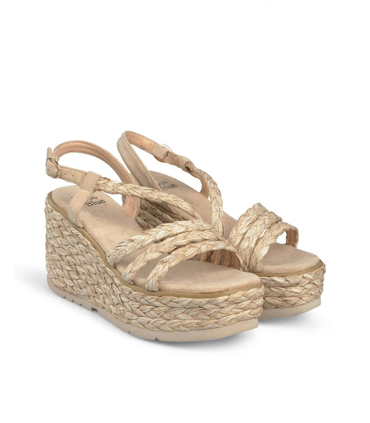 Sandalia tipo cuña con tiras trenzadas. Plantilla acolchada para un mayor confort. La altura del tacón es de 9,5cm.