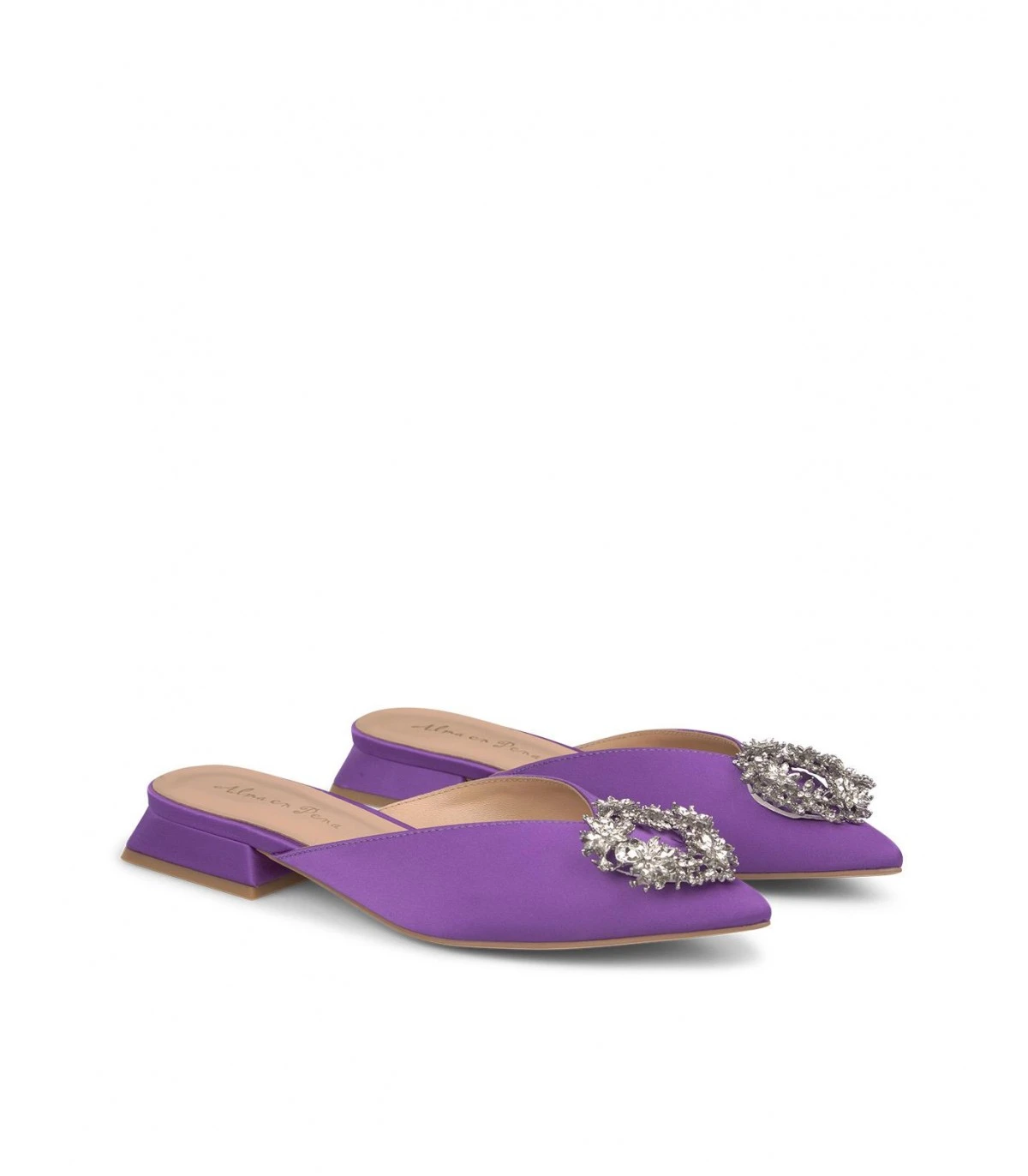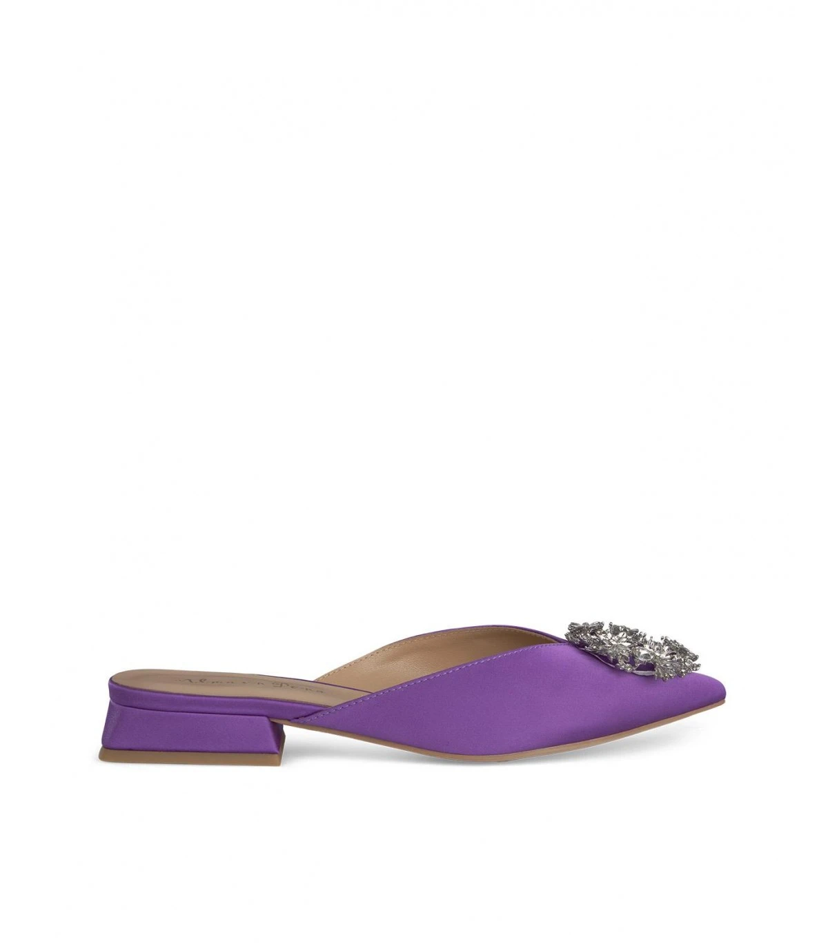 Mule con detalle de pedrería.Plantilla acolchada de piel. La altura del tacón es de 1cm.