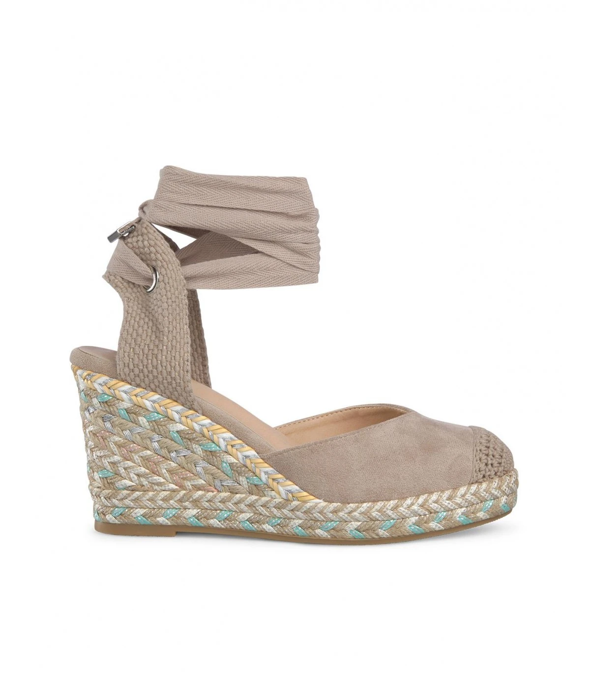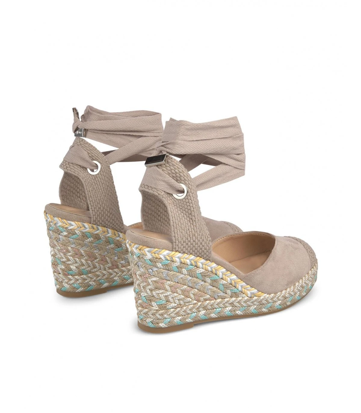 Sandalia cuña de esparto trenzado. Plantilla acolchada para un mayor confort. La altura del tacón es de 9,5cm.